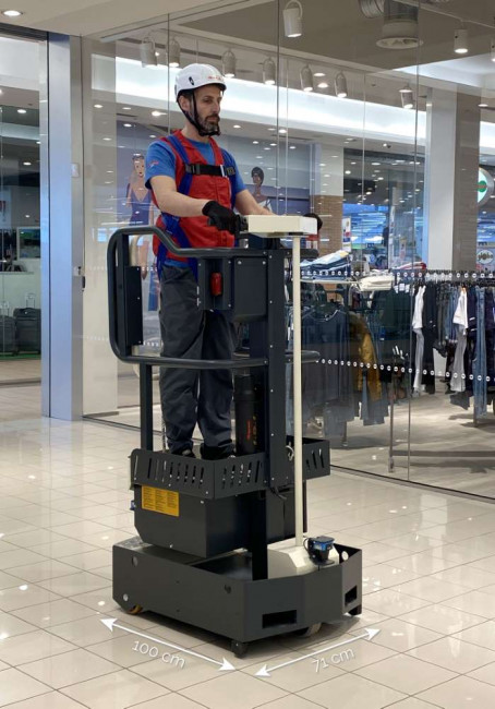 Notre nacelle compacte ELEVAH 40 Move est idéale pour l'entretien et le nettoyage des bâtiments publics, des bureaux et des immeubles. Grâce à sa taille réduite, e