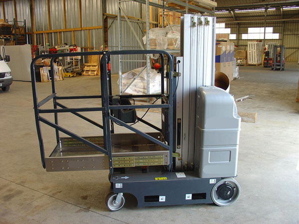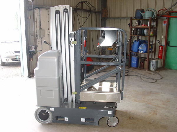 Nacelle automotrice compacte( déplacement électrique aussi)largeur de passage 80 cm. Hauteur de travail env 5 à 6m et une charge de 100 kg c"est largement suffisant.