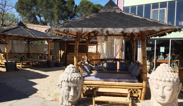 Ce lit extérieur en bambou permet de bénéficier d'une sieste dans le jardin ou à côté de la piscine.