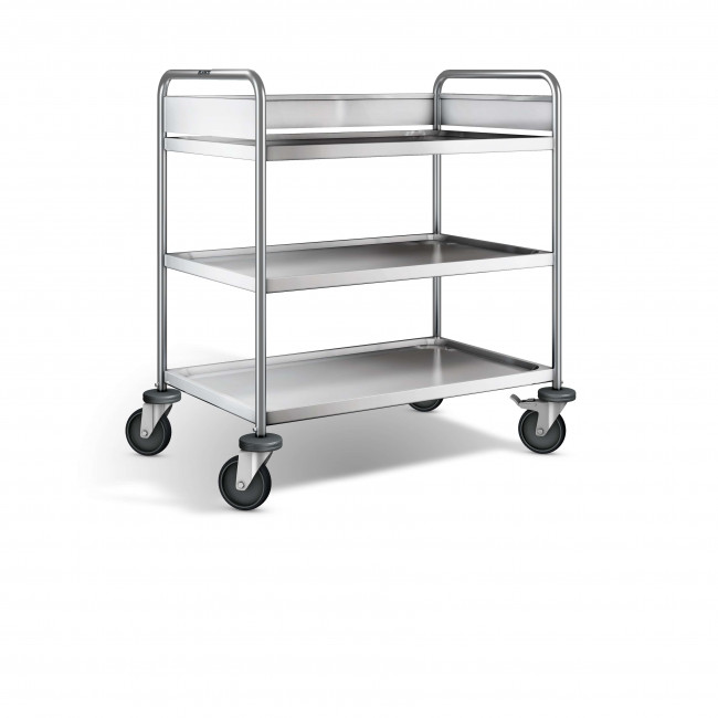 Ce chariot de service en inox est conçu pour le transport, le débarrassage, l’entrepose et le stockage dans les espaces de restauration.