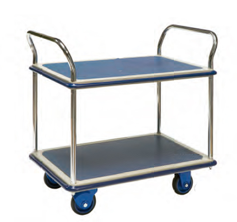 chariot à 2 ou 3 plateaux est conçu spécialement pour une utilisation à l’intérieur dans les bureaux et ateliers.