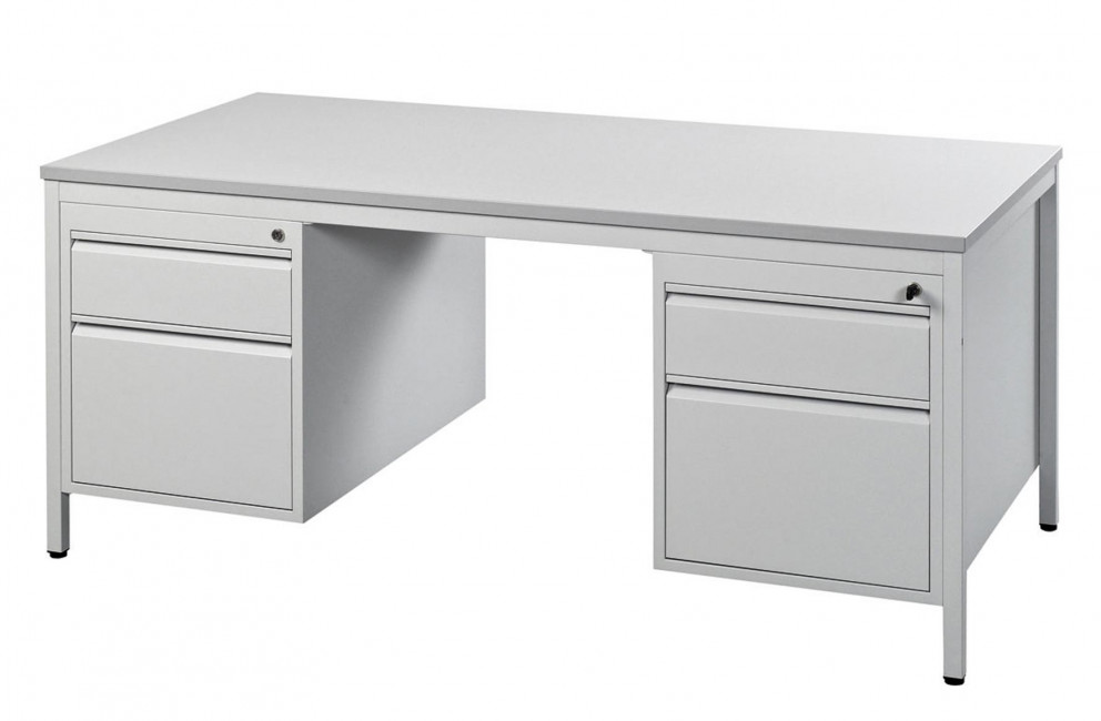 Le bureau dispose d’un plateau mélaminé d’épaisseur 18 mm, chants PVC et le caisson est fabriqué en tôle d’épaisseur 7/10e.