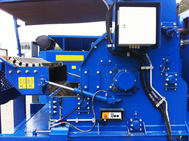 Alimentation verticale par le convoyeur du pré-broyeur,largeur d’introduction de 1500 mm et profondeur de 600 mm. Il dispose d’un régulateur électronique avec automate de commande optimisant le fonctionnement du broyeur.
