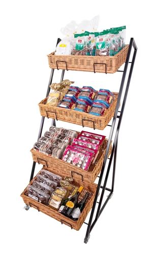 Avec ses quatre paniers en osier inclinés (600 x 400 mm), il permet une présentation optimale de vos produits en libre-service, tout en facilitant l’accès aux clients.