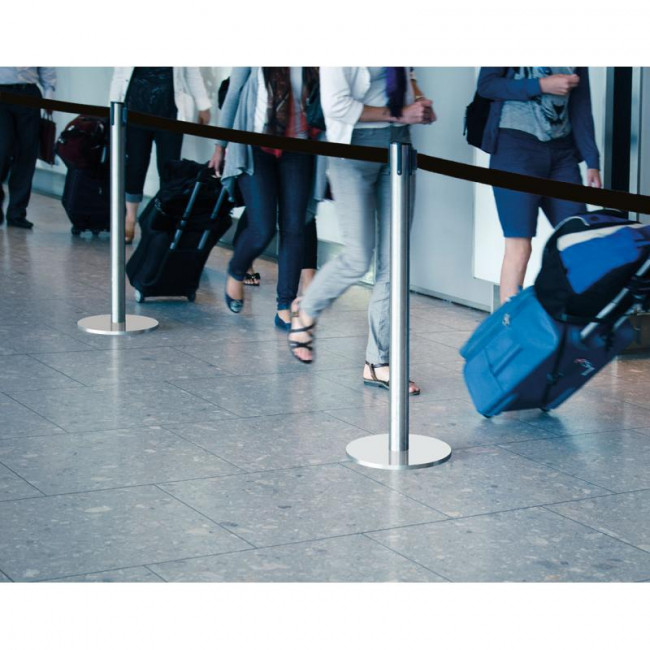Ce poteau de guidage à ruban est idéal pour maitriser les flux de personnes en intérieur : entrée de bâtiment, file d'attente ...