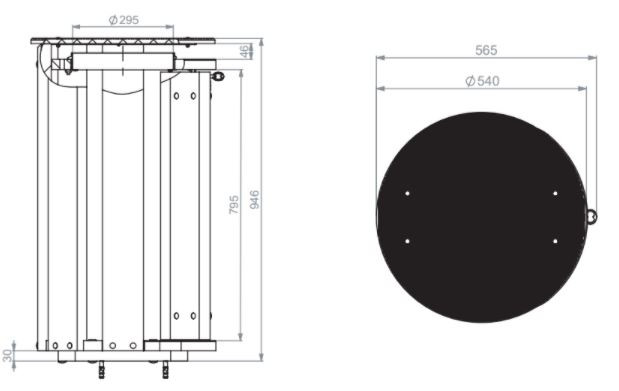 - Diamètre avec couvercle : 540 mm