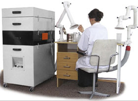 Il peut être complété par des mini bras de captations articulés pour capter au plus près les vapeurs ou poussières toxiques manipulées.