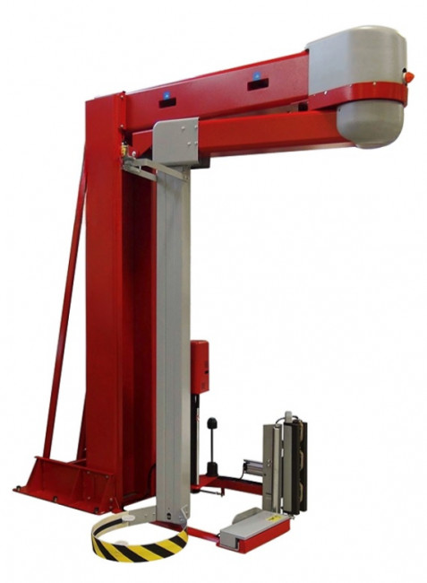 Découvrez cette banderoleuse à bras tournant, équipée d'un frein électromagnétique et offrant un pré-étirage de 250%.