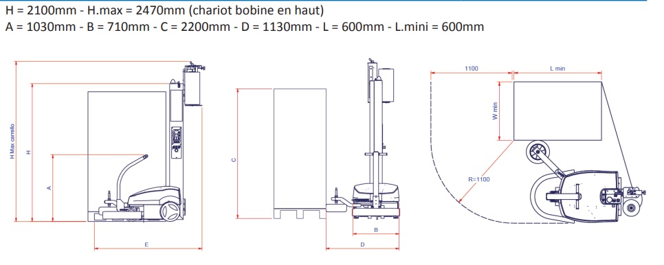 Son panneau de contrôle intuitif permet une manipulation aisée et efficace, tandis que son chariot équipé d'un frein mécanique garantit une mobilité optimale lors du banderolage des palettes.