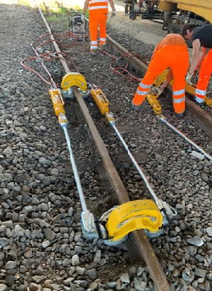 Le tendeur hydraulique de rails permet de tendre, presser ou maintenir deux rails en position neutre.