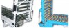 portillons relevables peuvent être à rouleaux gravitaires ou tapis suivant la nature du produit à véhiculer.