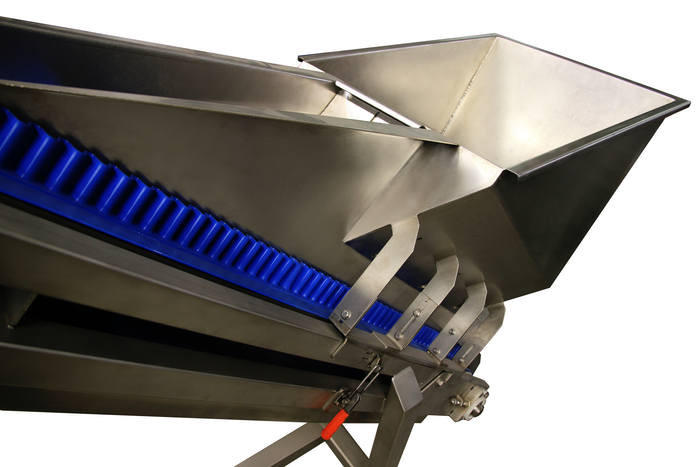 L'élévateur à tasseaux tout inox pour l'agroalimentaire permet d’alimenter en hauteur les équipements de process :