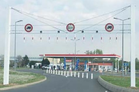 il nous faut installer 2 portiques pour bloquer l"accès aux camions d"un hauteur de plus de 1.90m.