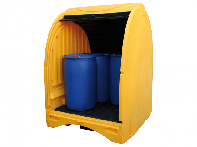 Cet abri de stockage avec rétention convient pour stocker et protéger les fûts, les bidons et vos contenus contre les intempéries et les vandalismes.