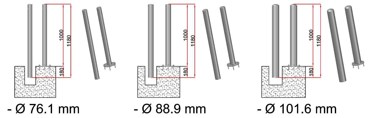 Demandes de devis pour Potelet en inox - Ø 76.1 mm - 88.9 mm ou 101.6 mm - H 1180 mm