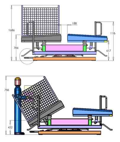 Doté de deux plateaux inclinables, il améliore l’accessibilité au contenu des caisses en phase de déchargement.