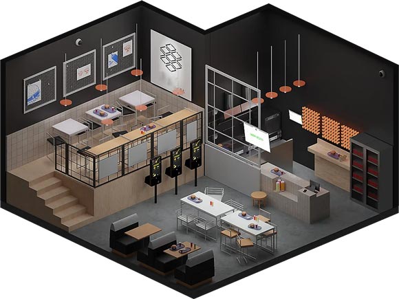 L’installation de bornes de commande en libre-service est simple et modulable, selon les contraintes d’espace. Ces équipements s’adaptent parfaitement à l'organisation interne et permettent une synchronisation en temps réel avec les équipes en cuisine et en service.