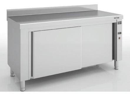 Ce meuble chaud en inox est destiné au rangement et à la conservation des marchandises, pour chauffer des plats et les garder au chaud