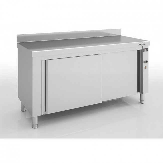 Disponible en plusieurs dimensions (de 1200 à 2250 mm), avec ou sans étagère, ce meuble inox chauffant professionnel s’intègre facilement dans vos espaces de préparation grâce à son design modulaire.