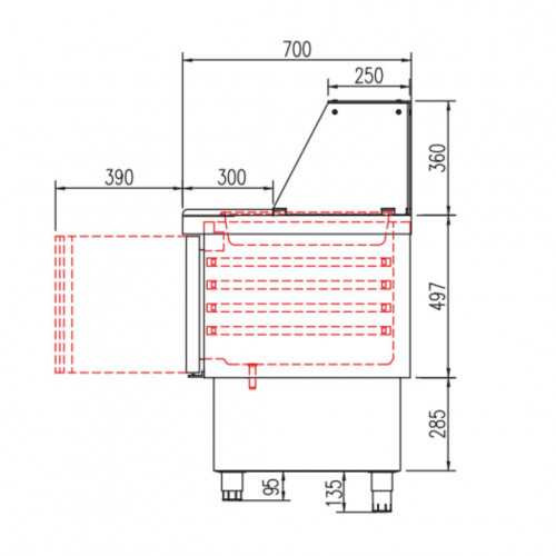 Ce meuble de préparation 700 positif permet d'effectuer la préparation ou le dressage de vos plats sur un espace de stockage à réfrigération ventilée.
