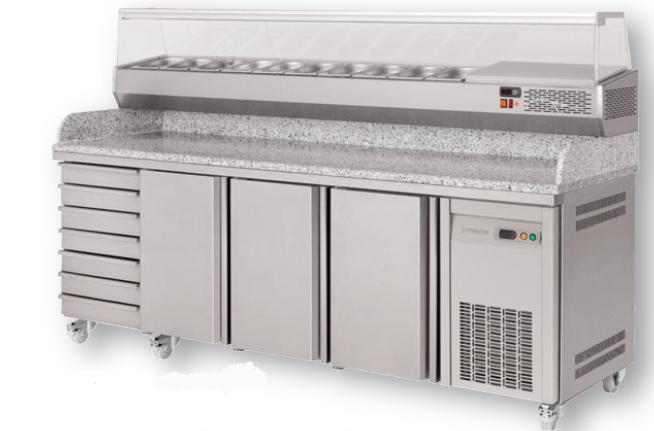 Nous avons besoin Table de préparation réfrigérée pizza. Dimension:1795x700x850 Besoin en Aout Merci de nous établir un devis