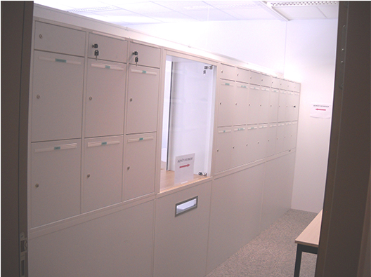 La distribution est effectuée dans un ensemble de cases qui peuvent être ouvertes ou fermées par des portes individuelles.