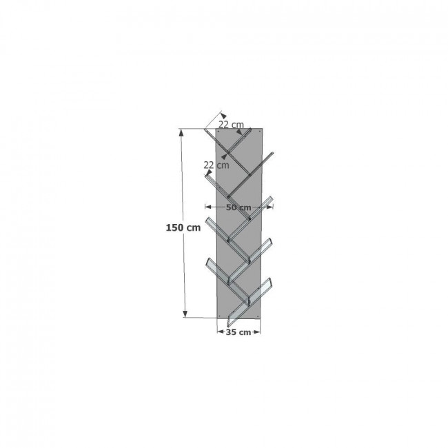 La bibliothèque mesure 1,50 m de hauteur et 50 cm de largeur, avec des tablettes de 22 cm de profondeur.