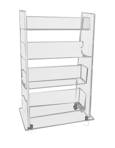 Bibliothèque à roulettes en Plexiglas - 4 étages - 70 cm x 40 cm - H.108 cm