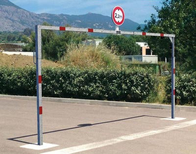 Gabarit de parking pivotant, hauteur 2.20 m, largeur 7m, avec panneau B12, couleur RAL à définir en phase travaux