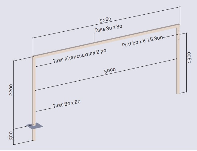 30/07/2020fourniture pour 1 portique parking acier galva peint hauteur :2m50 longueur 7m finition laqué blanche avec système d’ouverture pompier fixation sur platine chantier sur le 44