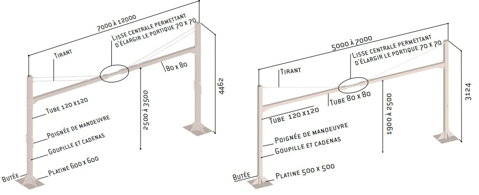 07/02/20223 portiques entrée déchèterie pivotant: largeur 5m à 7m; hauteur réglable