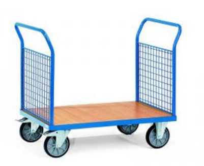 Optez pour notre chariot à ridelle en treillis, un équipement métallique, muni de roues facilitant son déplacement et disponible en plusieurs modèles et dimensions, afin de répondre à plusieurs besoins professionnels.