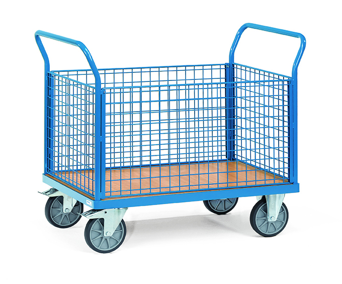 Découvrez nos chariots à 4 ridelles grillagés, spécialement conçus pour optimiser la manutention professionnelle et sécuriser le transport en atelier logistique ou entrepôt industriel.