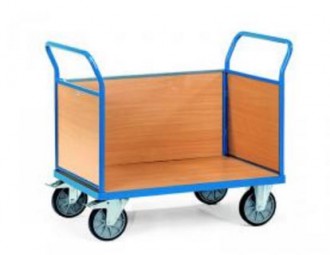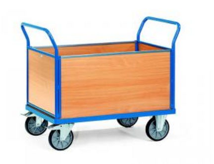 Découvrez notre chariot à ridelle en mélaminé, un moyen de transport interne très utile pour déplacer facilement les différents types de matériaux pour des charges allant jusqu’à 600 kg.
