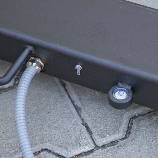 - La poignée permet de placer l’indicateur sur toute surface horizontale plane et le visser au mur avec la possibilité de régler l’angle d’inclinaison