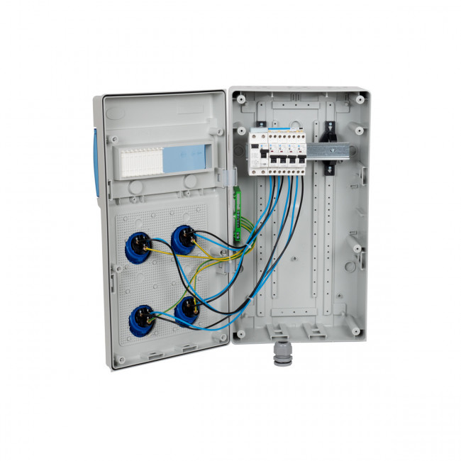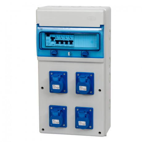Composition : 1 interrupteur différentiel 40A type AC NF - 4 disjoncteurs 1P+N 10A NF - 4 prises europennes CEE 10A