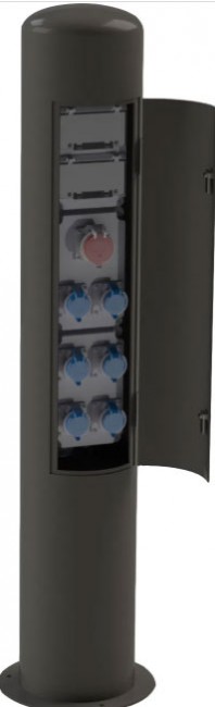 La borne de distribution énergie fixe escamotable est un mobilier urbain conçu pour les communes et collectivités et adapté aussi bien aux places de marché qu'aux ports de plaisance et haltes fluviales.
