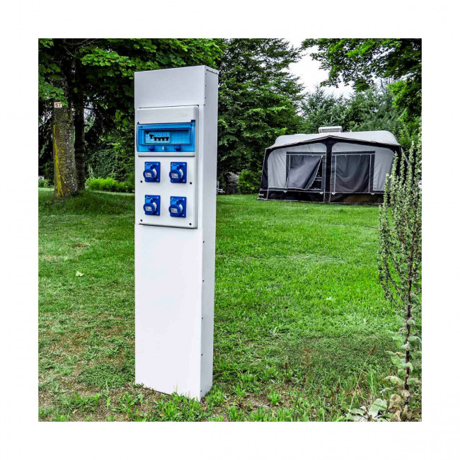 Borne de camping métallique est un coffret électrique permettant d'alimenter 1 à 4 emplacements de caravane.