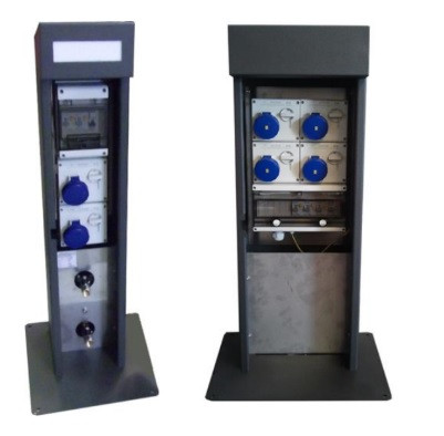 Elle s’installe sur platine de fixation et peut être équipée de 2 à 6 prises CEE 16A à 125A avec protections intégrées.