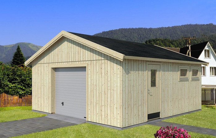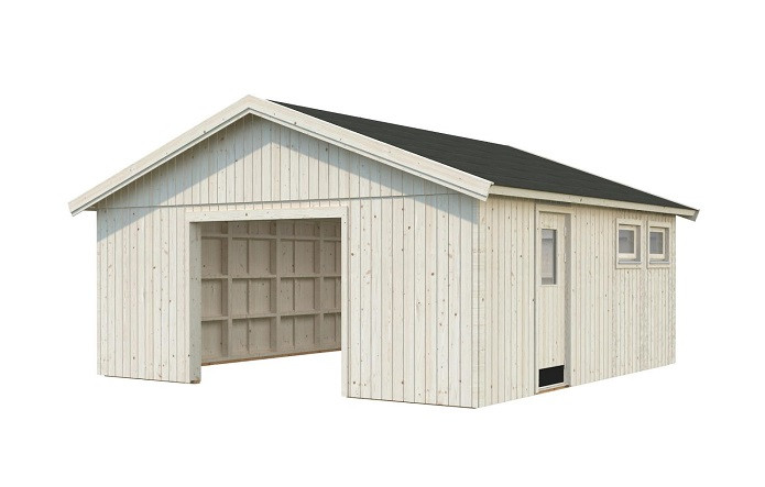 Cette cabane de garage en bois permet le stationnement de votre voiture en sécurité.