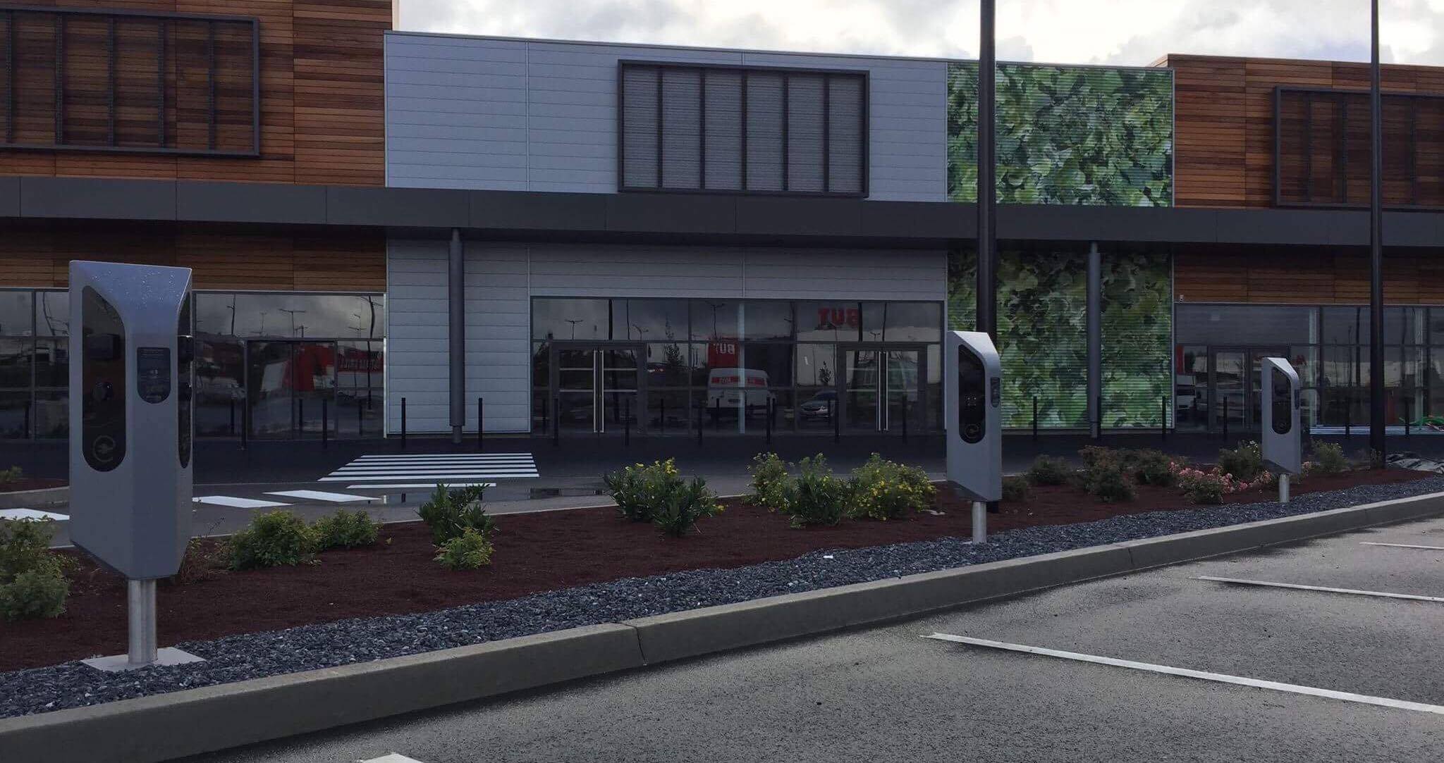 Cette borne de recharge pour VE a était conçu de manière a la rendre la plus invisible que possible. En effet, son utilisation étant principalement centrée sur le cœur de ville et les parkings privée d'entreprise entraîne la contrainte de l'esthétisme.