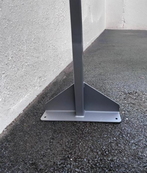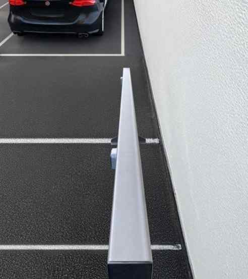 Les dimensions de la structure (240 cm de long, 10 cm de large, 16 cm de haut, tôle 0,2 cm) garantissent une installation stable et discrète, parfaitement adaptée aux zones de stationnement.