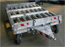 04/12/2008J"ai déjà demandé des informations sur vos produits. Nous avons un besoin urgent de remorque porte palette pour transporter des palettes d"archives d"un bâtiment à l"autre. Ces remorques seront tirer par des frontaux thermiques. Poids d"une palette 450KG, dimensions 800x1200. On voudrait mettre trois palettes par remorque et tirer deux remorques par frontaux. A voir on peut avoir des remorques aussi plus petites et plus nombreuses.