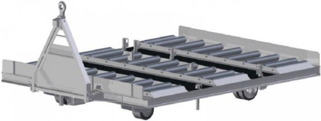 - Remorque à chargement transversal assurant le transport et la manutention de fret conditionné sur palettes ou en conteneurs aéronautiques