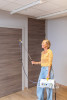 Sa poignée ergonomique et la barre de décrochage facilitent son accrochage et décrochage du rail, sans nécessiter d'échelle ou de chaise.