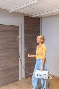 Le système "tarzan" permet des transferts fluides à travers les portes sans nécessiter de modifications de l'habitat, assurant que la personne en situation de handicap reste confortablement installée durant le passage d'une pièce à l'autre.
