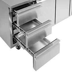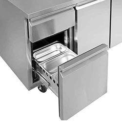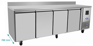 Cette table réfrigérée GN1/1 avec dosseret est conçue pour les spécialistes de cuisine (Restaurant, Hôtels, Snack, Fastfood…)