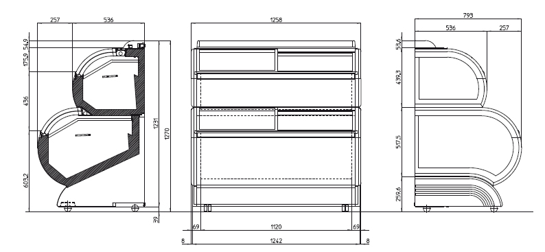 - Dimensions : L.1258 x P.793 x H.1270 mm