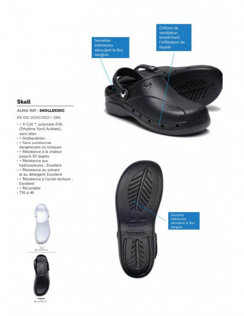 Le sabot avec ses propriétés antibactérien et antidérapant convient à un usage quotidien et la semelle ne laisse pas de traces.