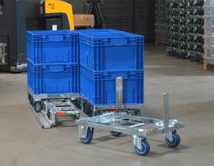 Notre gamme d’embases, socles roulants est composée de différents formats tous compatibles avec les emballages Galia. Ces embases sont munies d’un timon (en option) permettant la réalisation de petits trains logistiques (Milkrun) pour l’approvisionnement de composants aux postes de travail.